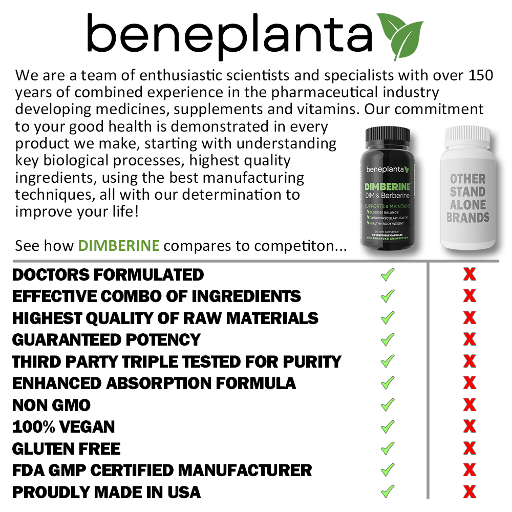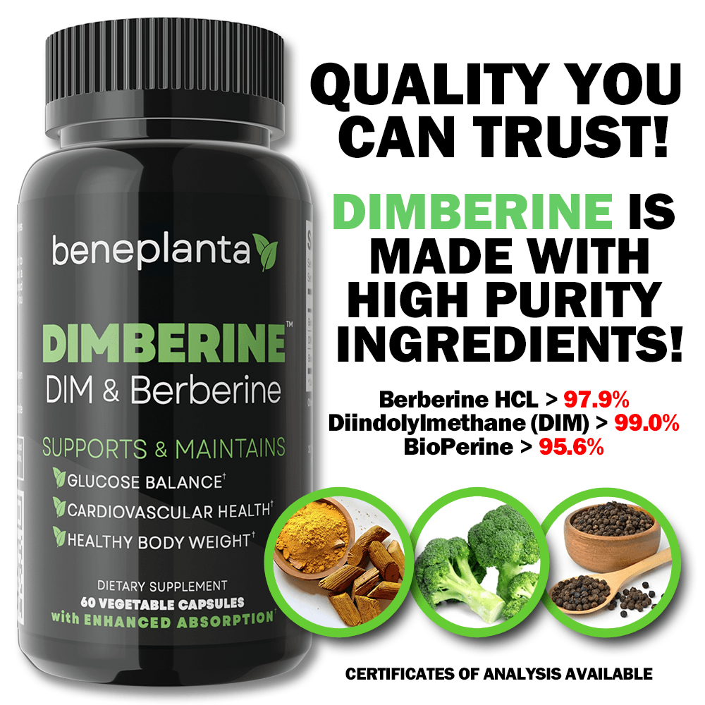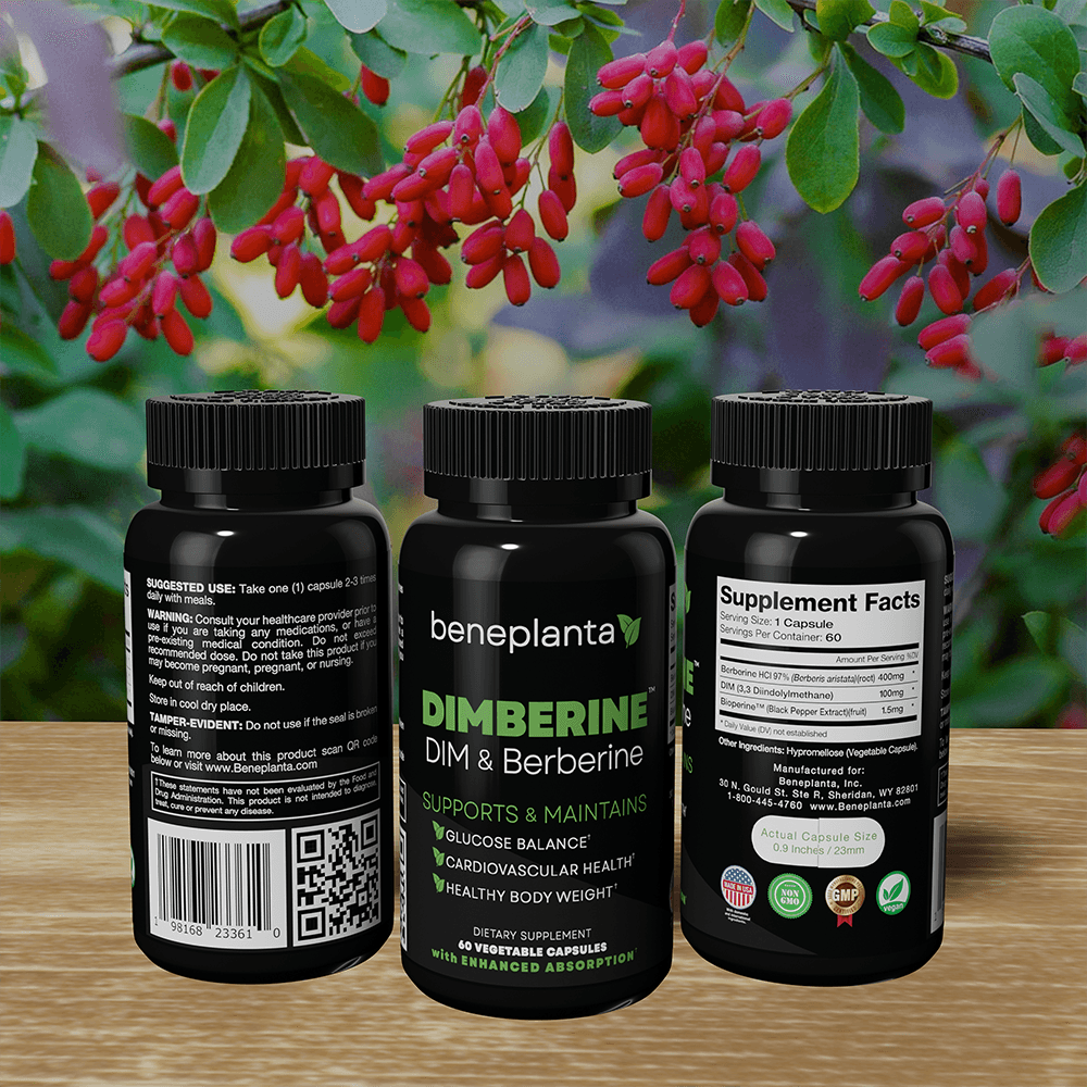 Dimberine™ is a unique blend of premium natural ingredients containing Diindolylmethane (DIM), Berberine HCl, and BioPerine. This powerful combination was carefully designed to support healthy blood glucose, fat metabolism and overall wellness.